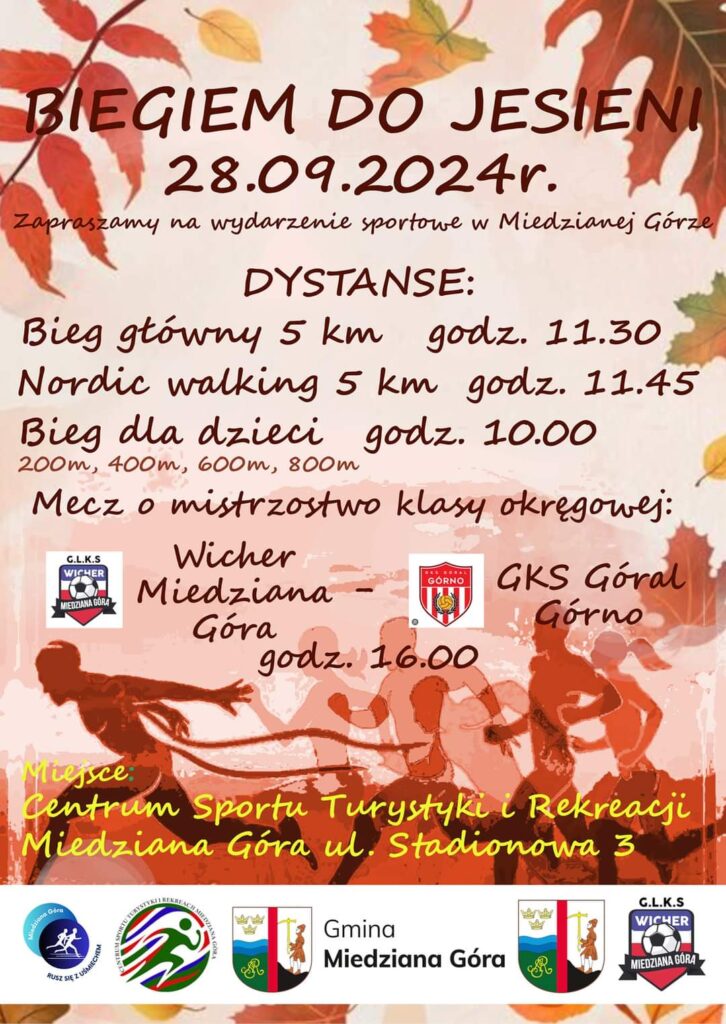 Zawsze staramy się wspierać lokalne inicjatywy a szczególnie te związane ze sportem Wraz z Gmina Miedziana Góra Oficjalny Profil, Centrum Sportu Turystyki i Rekreacji Miedziana Góra oraz Rusz się z Uśmiechem Miedziana Góra zapraszamy do wzięcia udziału w BIEGIEM DO JESIENI 2 Więcej informacji niebawem #lokalniejestfajnie #lokalniesportowo