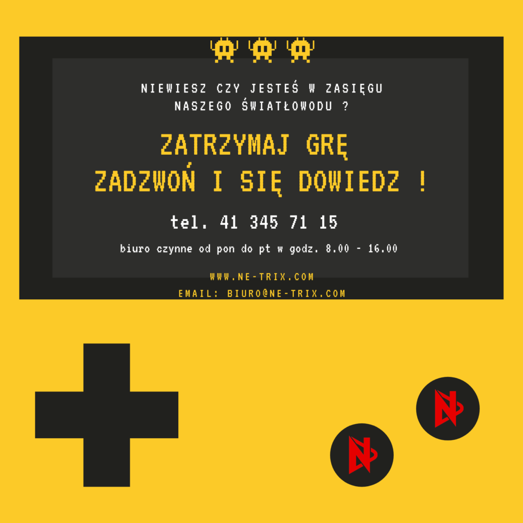 W związku ze stanem zagrożenia epidemiologicznego do odwołania nasze biuro pozostaje zamknięte. W dalszym ciągu możecie się z nami kontaktować telefonicznie pod nr 41 345 71 15 od pon do pt od 8-16 oraz sms pod nr 796 650 763 całodobowo. Także mailowo pod adresem biuro@ne-trix.com Więcej informacji co do planowanych działań oraz instalacji podamy […]